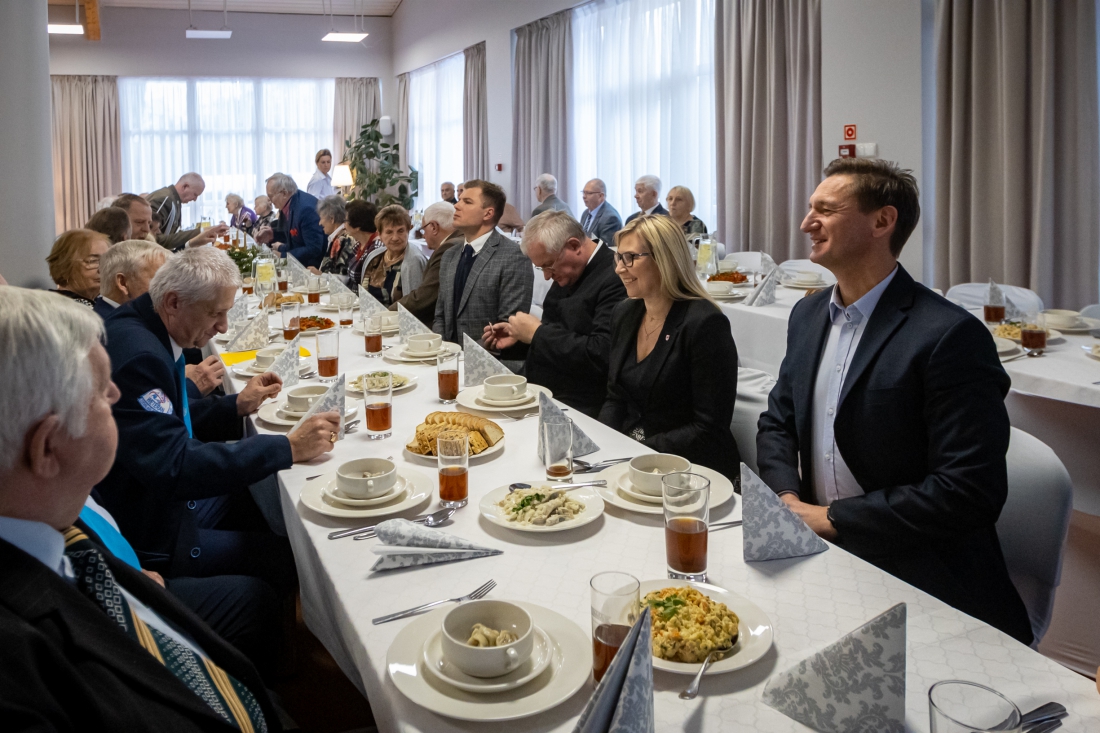 Marszałek Olgierd Geblewicz i kombatanci przy świątecznym stole