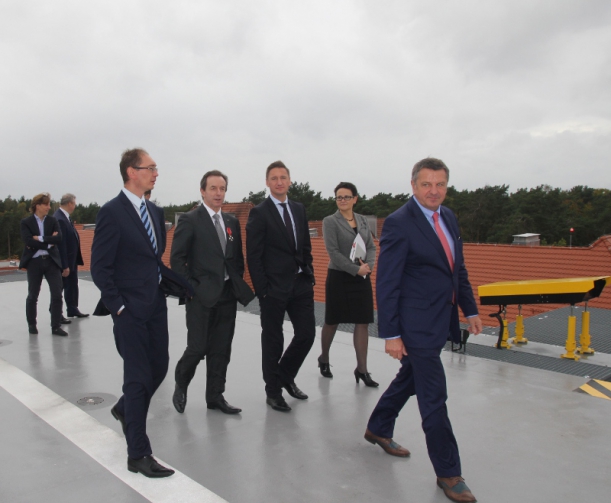 Wszyscy uczestnicy uroczystości mieli okazję obserwować pierwszy, próbny start helikoptera Lotniczego Pogotowia Ratunkowego i potwierdzić, że płyta lądowiska przeszła pionierski egzamin.